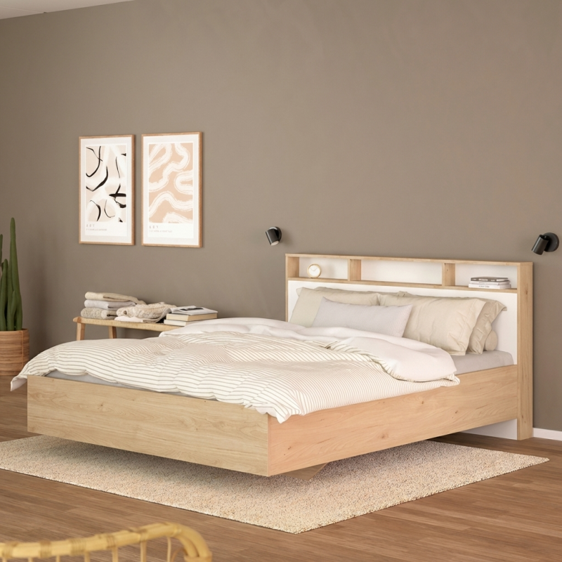 Το διπλό κρεβάτι Ikast σε συνδυασμό χρωμάτων Jackson Hickory / White ξεχωρίζει για τον ιδιαίτερο και σύγχρονο σχεδιασμό του, προσφέροντας μια κομψή και μοντέρνα αισθητική στο υπνοδωμάτιο. Το floating design (αιωρούμενη βάση) δημιουργεί ένα εντυπωσιακό οπτικό αποτέλεσμα, δίνοντας αίσθηση ελαφρότητας και μοντέρνας πολυτέλειας στον χώρο. Το κεφαλάρι του κρεβατιού διαθέτει ανοιχτή εσοχή αποθήκευσης, ιδανική για την τοποθέτηση βιβλίων, διακοσμητικών ή καθημερινών αντικειμένων, συνδυάζοντας πρακτικότητα και στυλ. Με διαστάσεις 169,8 x 216 εκ. ( ύψος 97 εκ.) , το κρεβάτι Ikast αποτελεί μια ιδανική επιλογή για όσους αναζητούν ένα design κρεβάτι με έντονη προσωπικότητα και σύγχρονη αισθητική, που αναβαθμίζει άμεσα κάθε υπνοδωμάτιο.