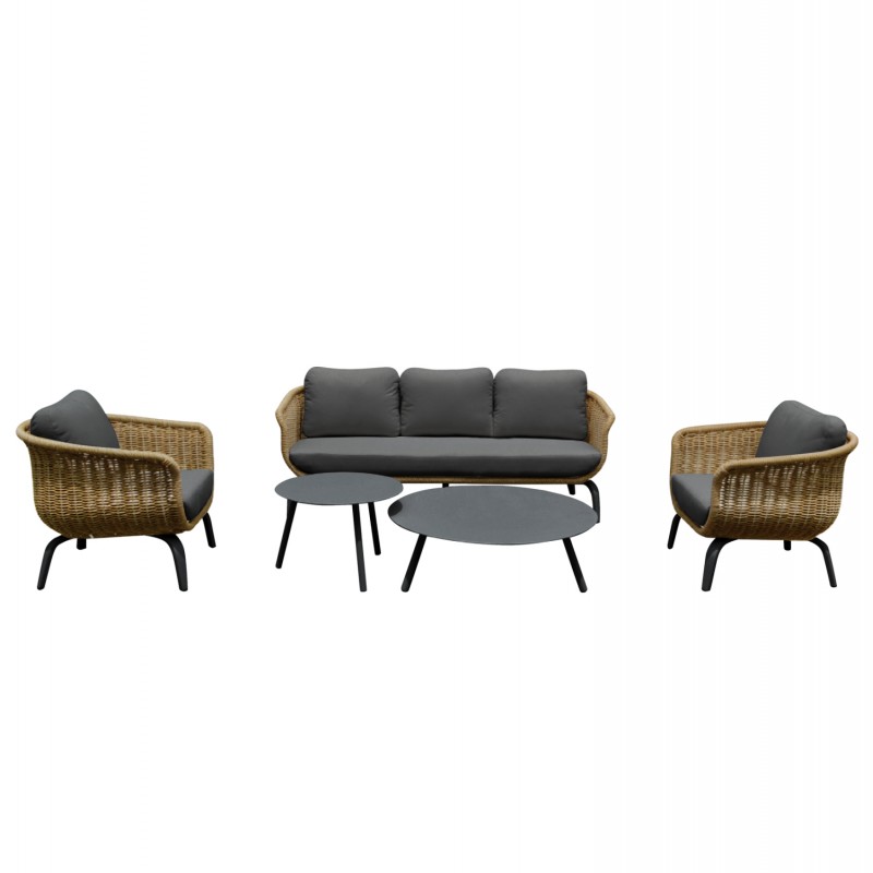 Σετ Σαλόνι Εξωτερικού Χώρου STERN 5 Τεμαχίων με Wicker & Αλουμίνιο – Καναπές, Πολυθρόνες & Τραπεζάκια—ΓΚΡΙ / ΦΥΣΙΚΟ