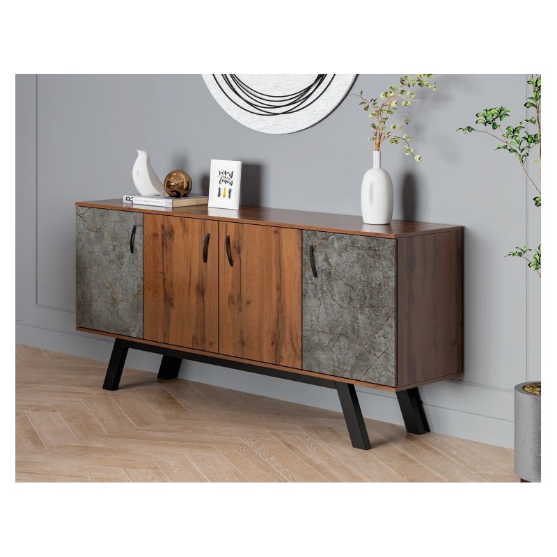 Μπουφές 180x44.5x85 N8 Νέο Καρυδί-Μάρμαρο Γκρί Μελαμίνη