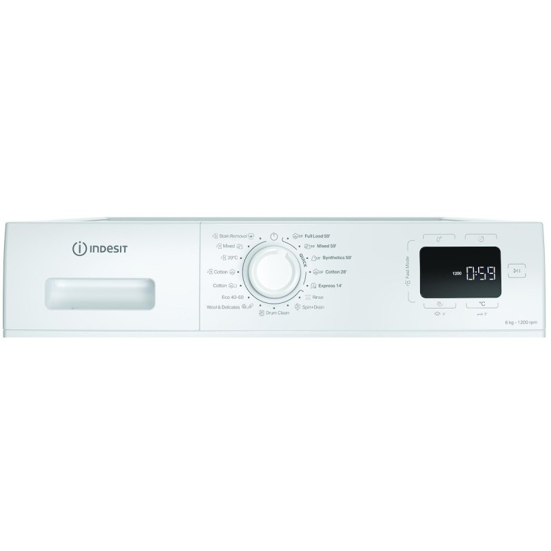 Το πλυντήριο ρούχων από τον κατασκευαστή Indesit, έχει χωρητικότητα κάδου κατάλληλη για έως και 6 κιλά άπλυτων ρούχων, και μπορεί να καλύψει τις ανάγκες δύο ατόμων. Είναι εμπρόσθιας φόρτωσης, δηλαδή η φόρτωση των ρούχων γίνεται από την πόρτα στο μπροστινό μέρος της συσκευής, που αποτελεί και τον πιο κοινό τύπο πλυντηρίων.