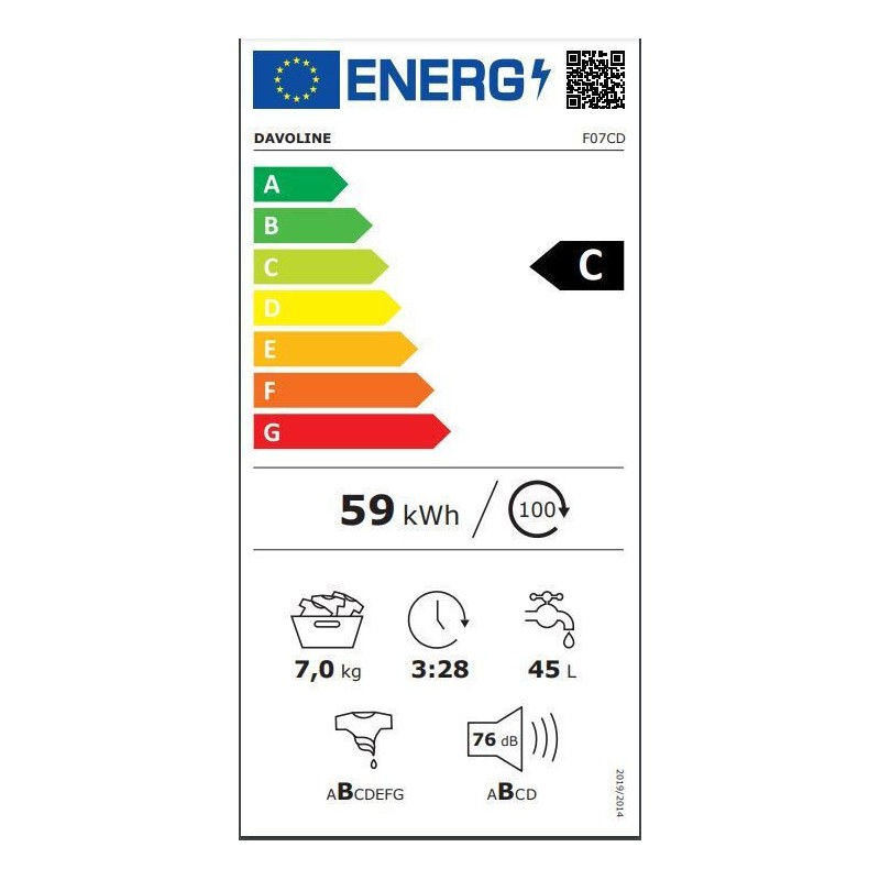 Το πλυντήριο ρούχων από τον κατασκευαστή Davoline έχει χωρητικότητα κάδου κατάλληλη για έως και 7 κιλά άπλυτων ρούχων, καλύπτοντας τις ανάγκες μιας οικογένειας τριών ατόμων. Είναι εμπρόσθιας φόρτωσης, δηλαδή η φόρτωση των ρούχων γίνεται από την πόρτα στο μπροστινό μέρος της συσκευής, που αποτελεί και τον πιο κοινό τύπο πλυντηρίων.