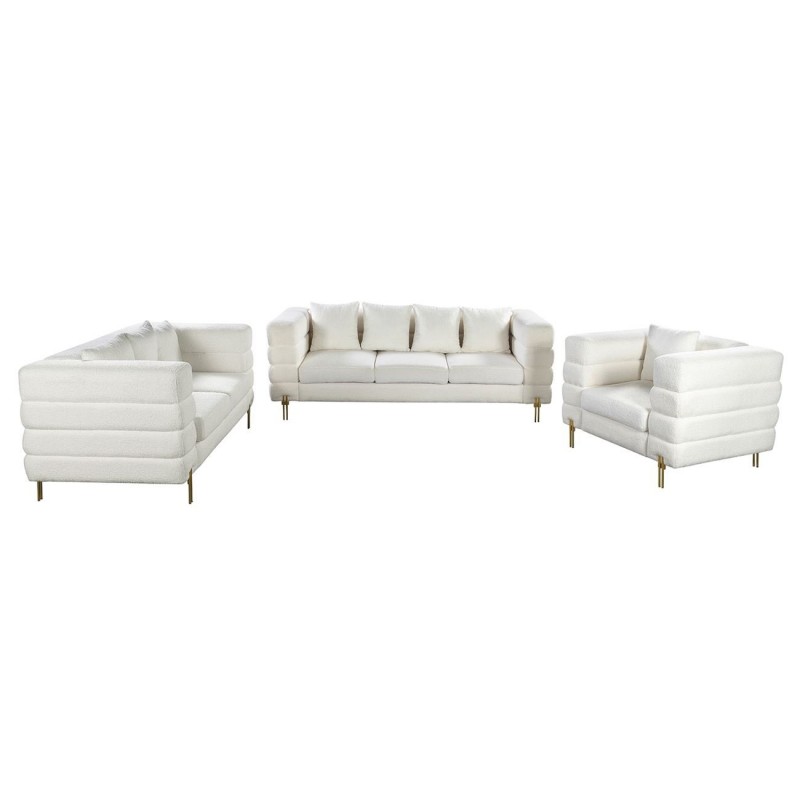 MORRIS Set Σαλόνι - Καθιστικό 3θέσιος + 2θέσιος + Πολυθρόνα Ύφασμα Teddy Άσπρο