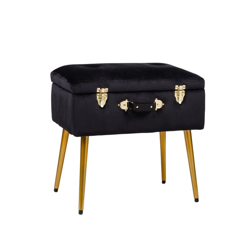 Juki αυτό το σκαμπό έχει ένα μυστικό, διαθέτει κάτω από το αναπαυτικό του κάθισμα μία βολική λύση αποθήκευσης. Είναι επενδεδυμένο σε ύφασμα velvet σε χρώμα μαύρο και στηρίζεται σε μεταλλικά πόδια μοντέρνου σχεδιασμού σε χρώμα χρυσού που δένουν αρμονικά με τα υπέροχα κουμπώματα ασφαλείας και το μοναδικό σε design χερούλι της.