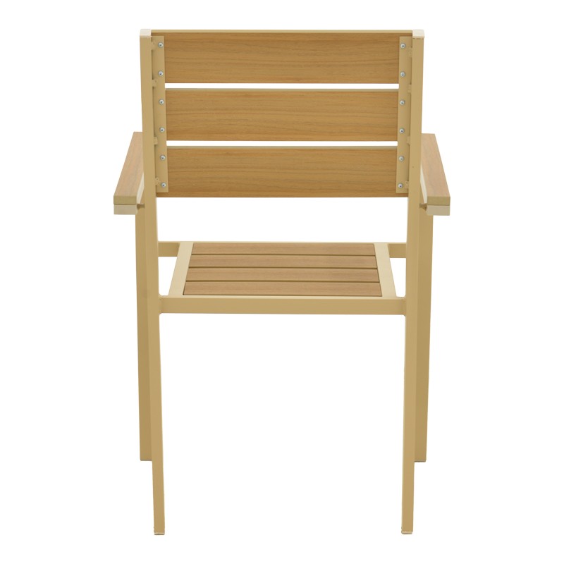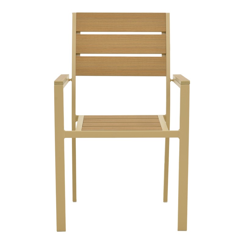 Plywood: Το plywood είναι ένα σύνθετο υλικό που μοιάζει με ξύλο, κατασκευασμένο από ανακυκλωμένα πλαστικά. Χρησιμοποιείται συνήθως για την κατασκευή εξωτερικών επίπλων, όπως τραπέζια, καρέκλες, ξαπλώστρες και παγκάκια. Είναι εξαιρετικά ανθεκτικό στις καιρικές συνθήκες.