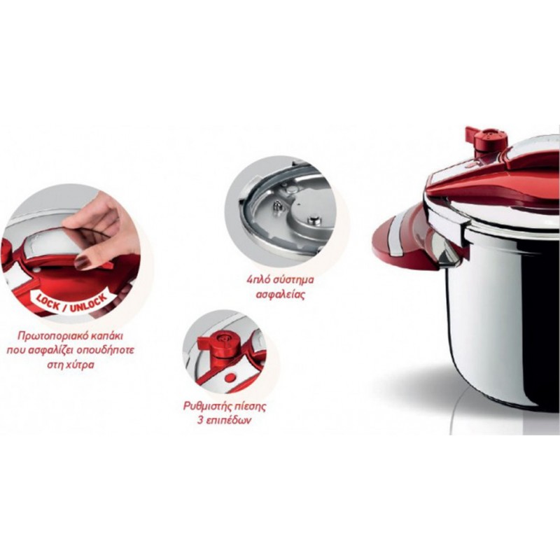 - Τριπλό σύστημα ασφαλείας, ρυθμιστής πίεσης, βαλβίδα ασφαλείας και λάστιχο σιλικόνης
