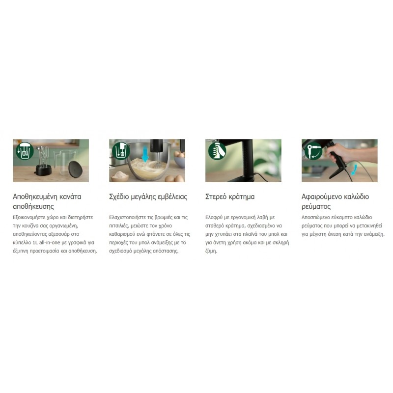 Μίξερ χειρός 3 σε 1 με ισχυρή και ευέλικτη κατασκευή που αποτρέπει το ανακάτεμα.