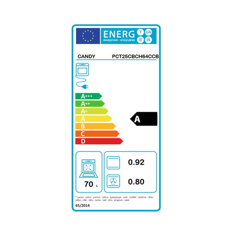 Candy PCT25CB+CH64CCB Φούρνος άνω Πάγκου 70lt με Κεραμικές Εστίες Π59.5εκ. Μαύρος A