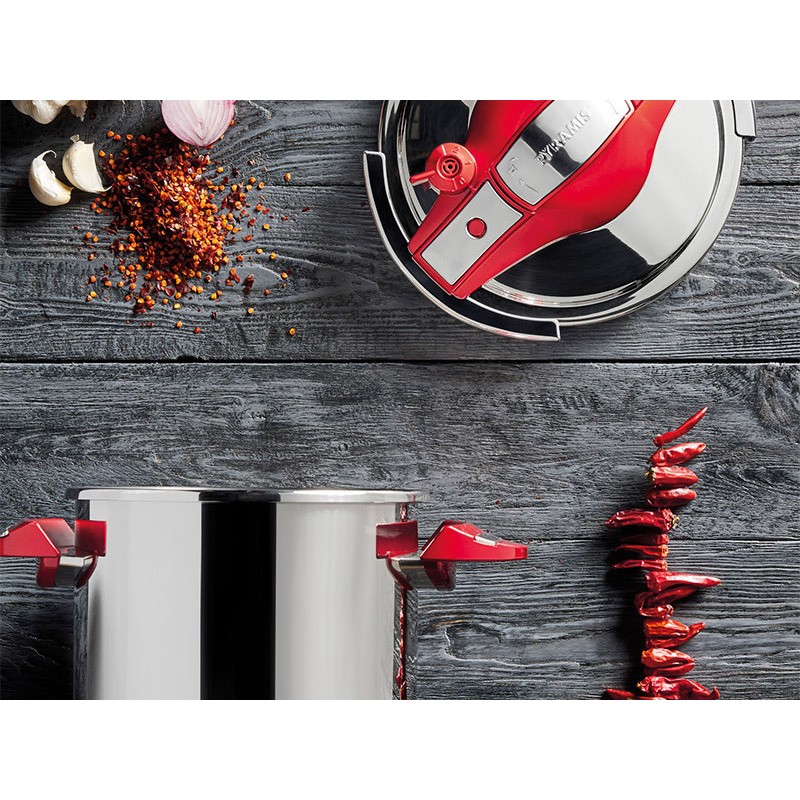 Εύκολο σύστημα ανοίγματος και κλεισίματος του σκεύους με το ένα χέρι. Η νέα χύτρα ταχύτητας Chroma διαθέτει εξελιγμένο καπάκι που ασφαλίζει σε οποιαδήποτε θέση με μία μόνο κίνηση!