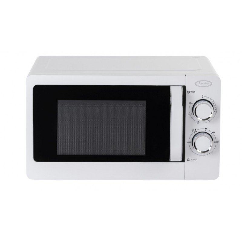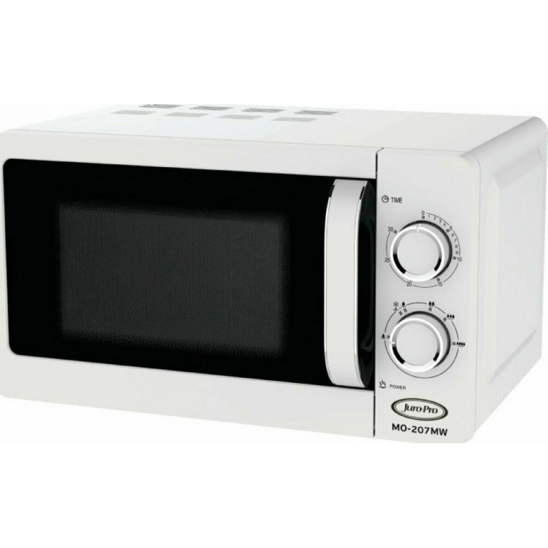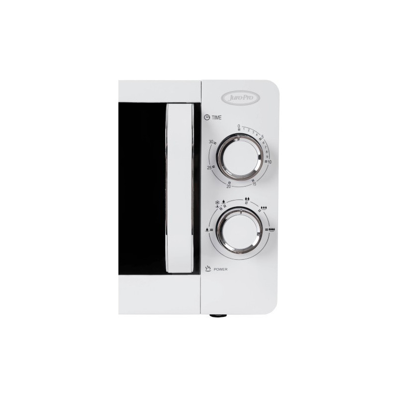 Φούρνος μικροκυμάτων Juro-Pro με καλαίσθητο design, ισχύ 700W, χωρητικότητα θαλάμου 20L, μηχανικό χρονοδιακόπτη 30 λεπτών και ηχητική ειδοποίηση λήξης του χρόνου λειτουργίας.