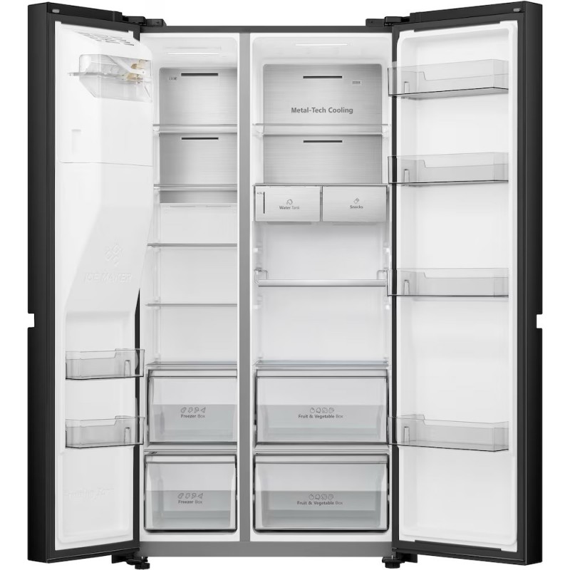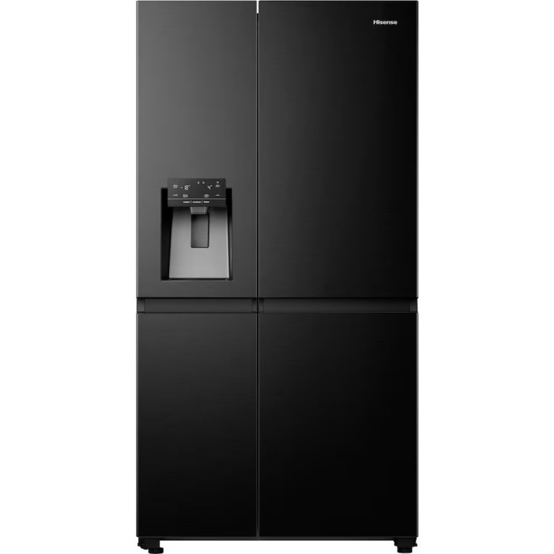 Ψυγείο ντουλάπα Hisense RS818N4TFE συνολικής χωρητικότητας 632 λίτρων, σε μαύρο χρώμα.