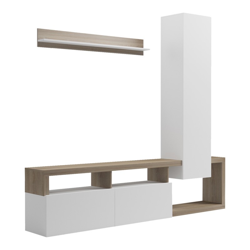 Μεταμορφώστε το σαλόνι σας με αυτό το κομψό και λειτουργικό μοντέρνο σύνθετο! Ο αρμονικός χρωματικός συνδυασμός δημιουργεί μία ζεστή και ταυτόχρονα minimal ατμόσφαιρα, ενώ το έξυπνο design προσφέρει πληθώρα αποθηκευτικών και εκθεσιακών χώρων.