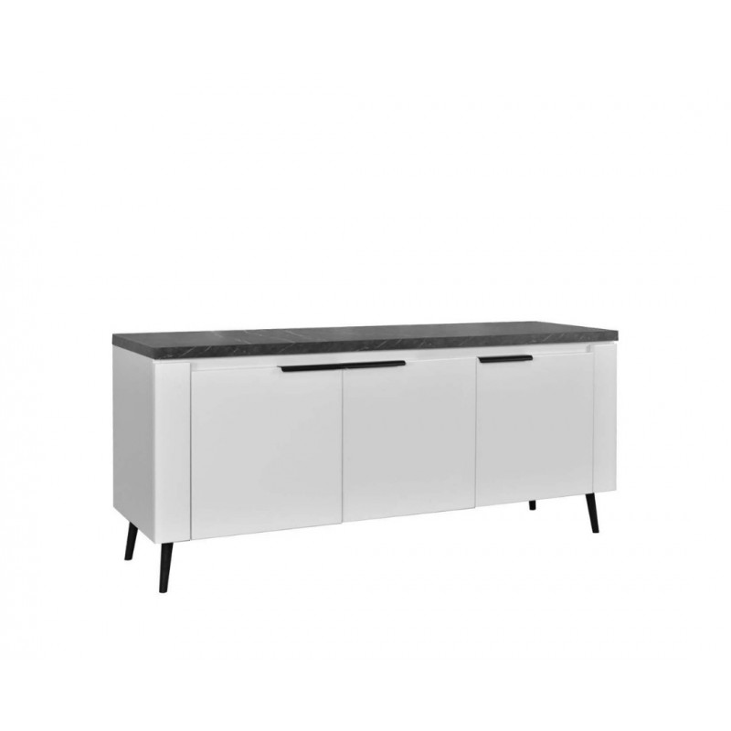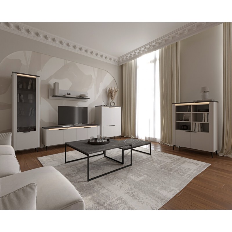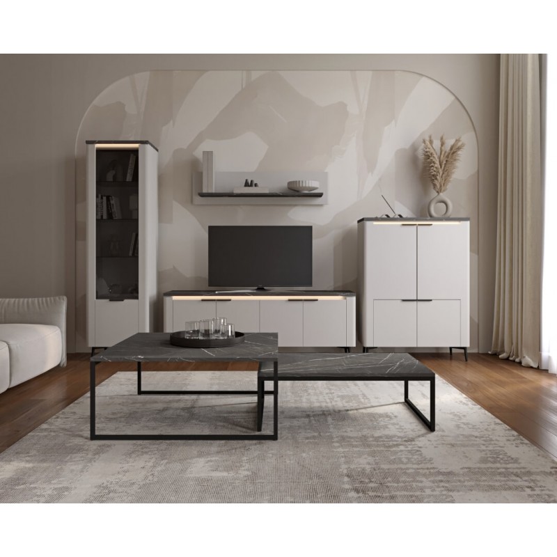 Έπιπλο TV 128 Astana με φωτισμό led λευκό γυαλιστερό/ μαύρο μάρμαρο 128,3x40x59,9.