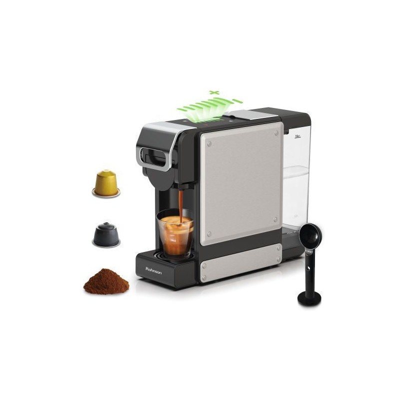 Η Rohnson R-98044 είναι η «πολυεργαλείο» μηχανή που φέρνει την ποικιλία των coffee shops στην κουζίνα σου, αφού δέχεται κάψουλες Nespresso®, Dolce Gusto και αλεσμένο καφέ.