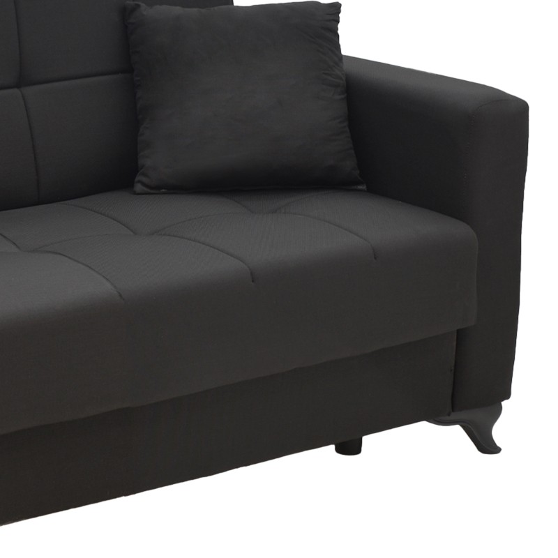2. Καναπές-κρεβάτι με αποθηκευτικό χώρο διθέσιος Modestο pakoworld μαύρο ύφασμα 155x85x80εκ