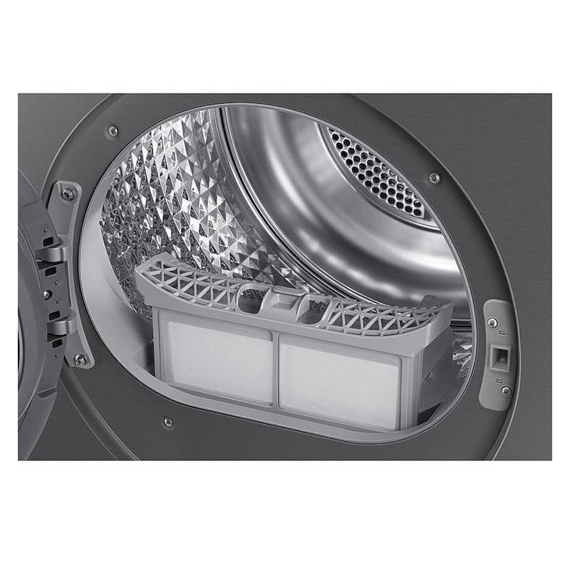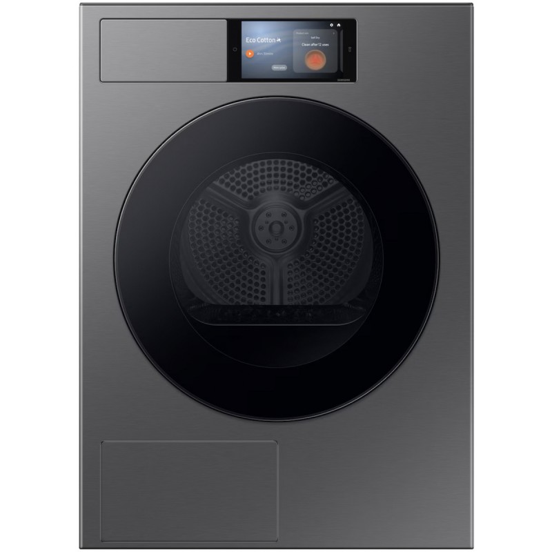 Το Samsung DV90F09F4SU4 συνδυάζει στυλ και λειτουργικότητα με χωρητικότητα 9kg και μοντέρνο σκούρο-ασημί φινίρισμα.
