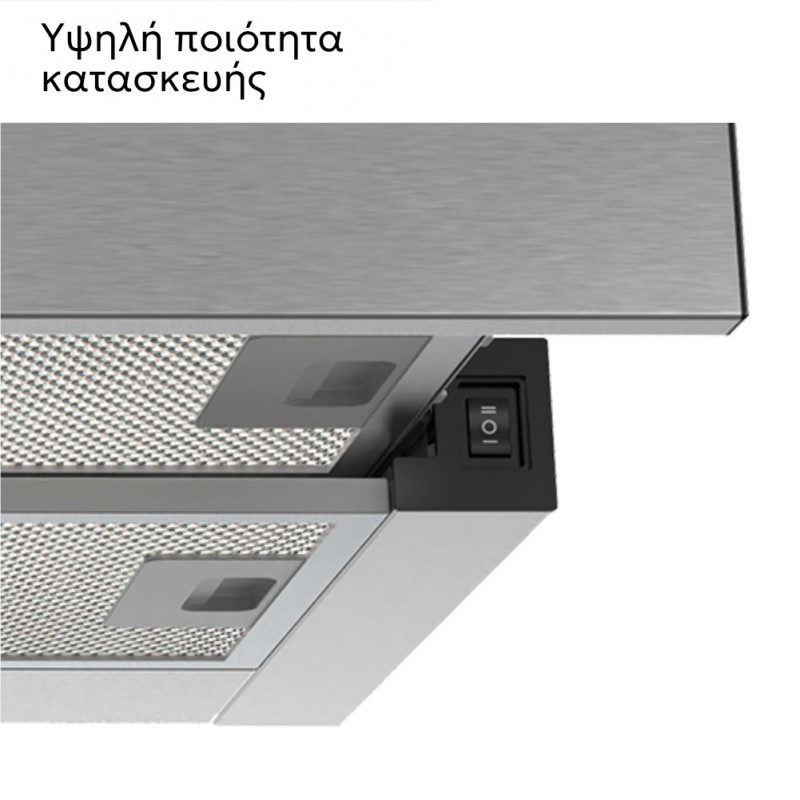 Ο απορροφητήρας Telemax TH-460 αποτελεί την ιδανική επιλογή για σύγχρονες κουζίνες που απαιτούν διακριτικότητα και υψηλή αισθητική. Χάρη στον συρόμενο μηχανισμό του (telescopic), ο απορροφητήρας καταλαμβάνει ελάχιστο χώρο και ενεργοποιείται μόνο όταν τον χρειάζεστε, διατηρώντας την κουζίνα σας οργανωμένη και κομψή με το Inox φινίρισμά του.