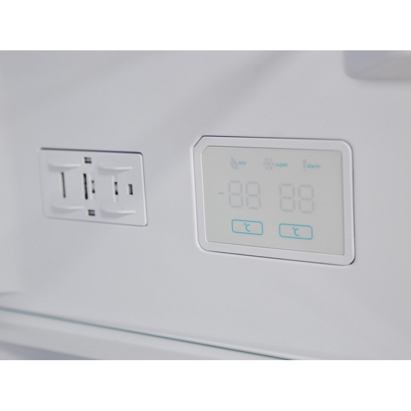 Το Dark Inox φινίρισμα δίνει έναν luxury αέρα στην κουζίνα σου, ενώ η απουσία εξωτερικής λαβής κρατά τις γραμμές καθαρές και minimal. Και αν ξεχαστείς; Ο συναγερμός ανοιχτής πόρτας θα σε ειδοποιήσει αμέσως για να προστατεύσει τα τρόφιμά σου και την κατανάλωση ενέργειας.