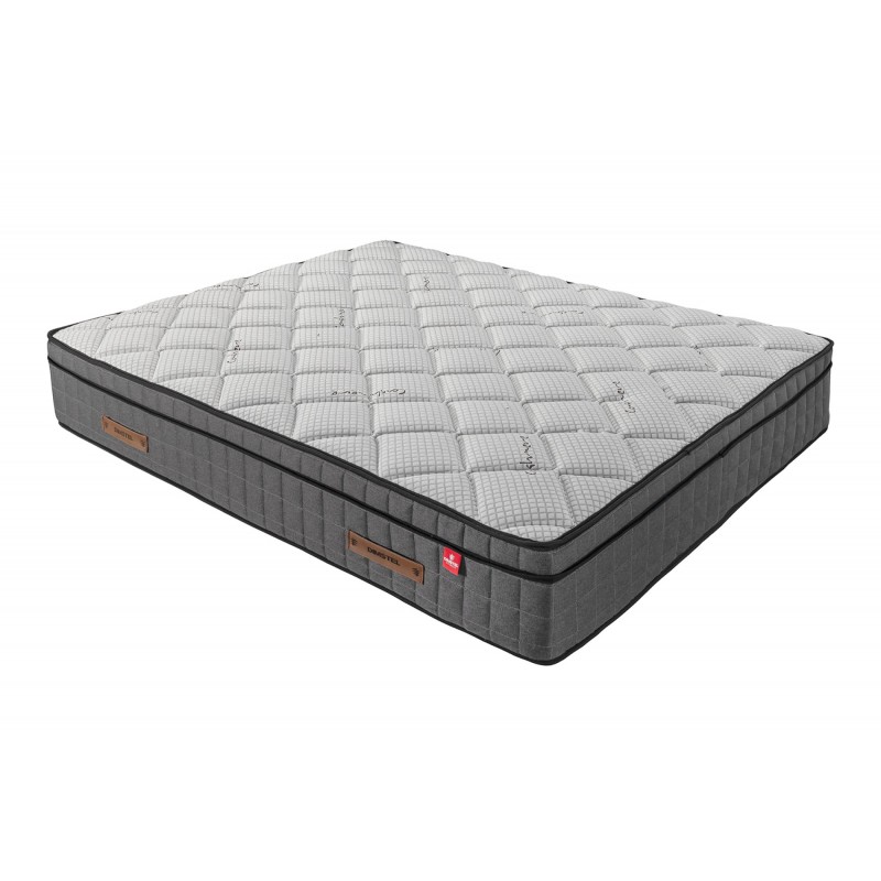 Με ύφασμα από πλεκτό πολυτελές κασμίρ, με στρώσεις από αφρώδη υλικά υψηλής ποιότητας και ανεξάρτητα ελατήρια Pocket ύψους 18 εκ. τα οποία ενισχύονται με ατσάλινο λαμάκι περιμετρικής στήριξης.